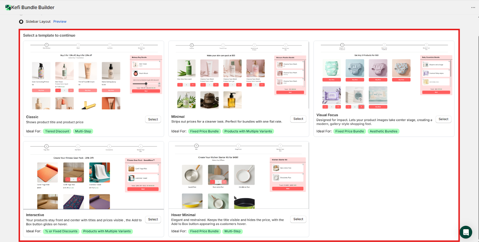 Next, select the template that best matches your branding and the goal of your bundle. You must select a template to continue.