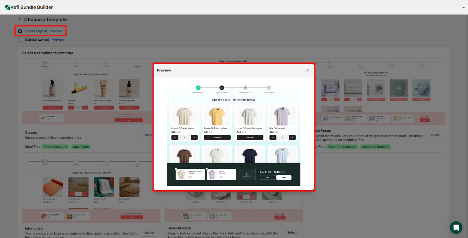 Footer Layout ⬇️: The bundle selector will appear at the bottom of the page or in a dedicated section below the main product details.