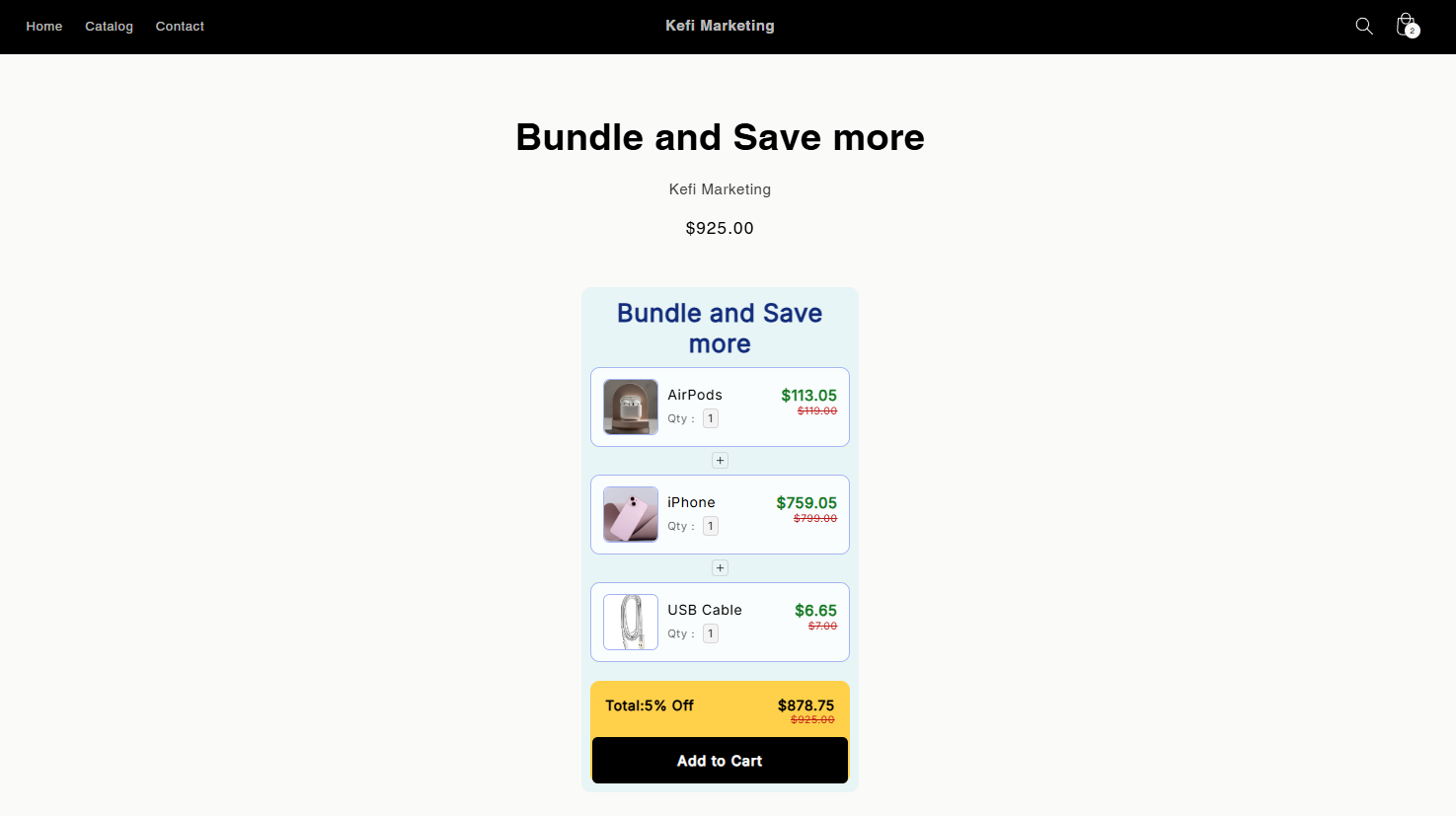 Bundling products is a great way to offer more value to your customers while increasing average order value. With Kefi Bundle Builder, you can easily create bundles as products to suit different merchandising strategies and customer preferences.
