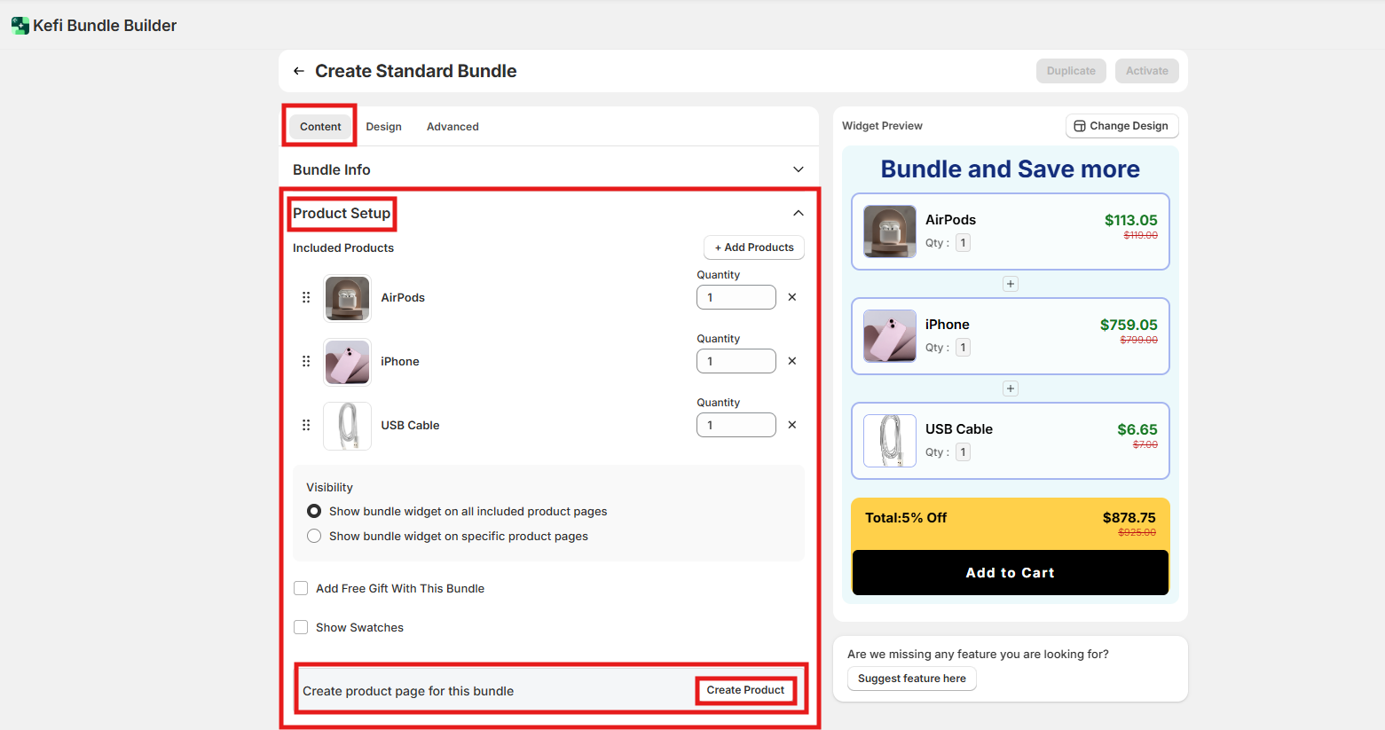 Click on “Create Product” to generate a dedicated product page for the bundle.