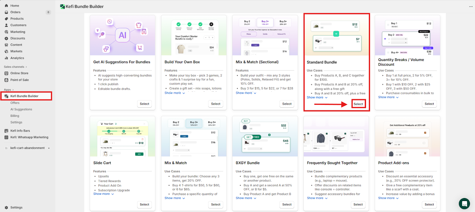 In this help guide, we will choose the Standard Bundle to create a bundle as a product.