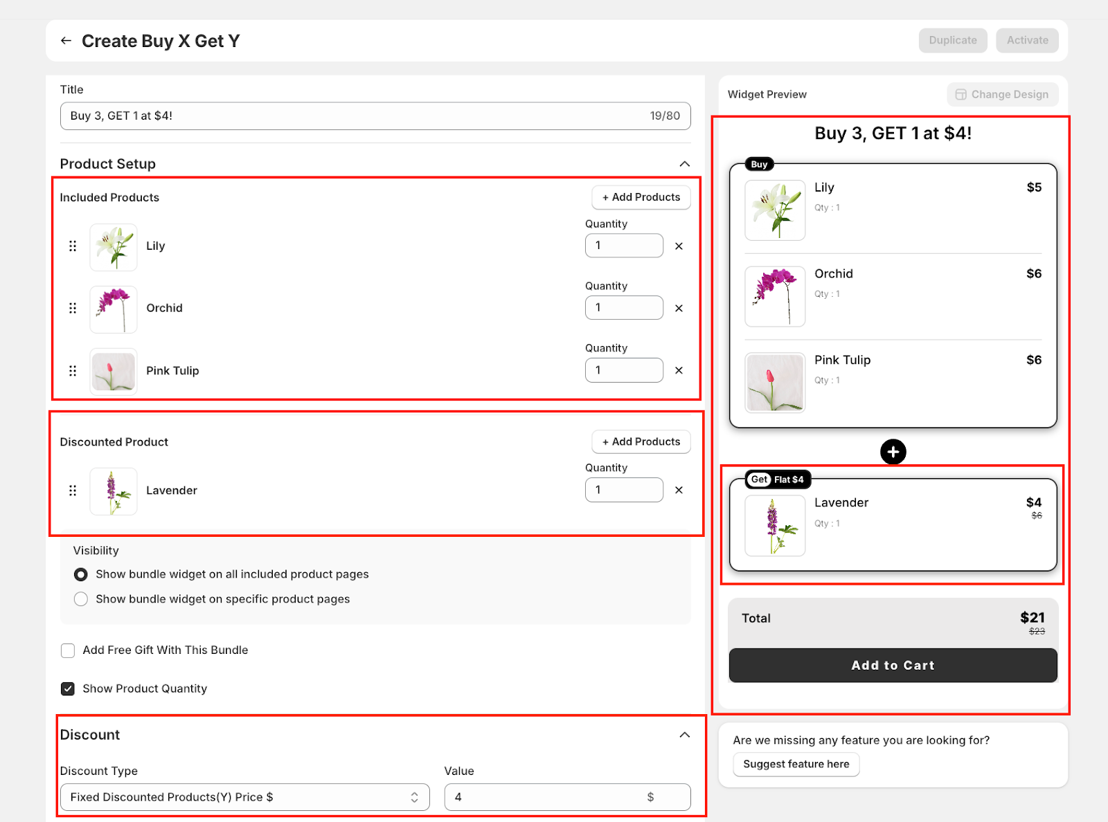 Example: “Buy any 3 flowers, get the 4th one for $4”
