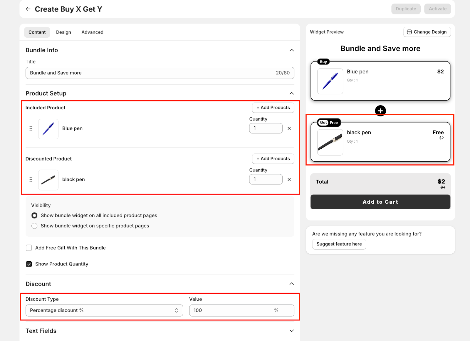 A crucial part of setting up this bundle is configuring the discount type—this determines how the reward is applied when the customer qualifies.