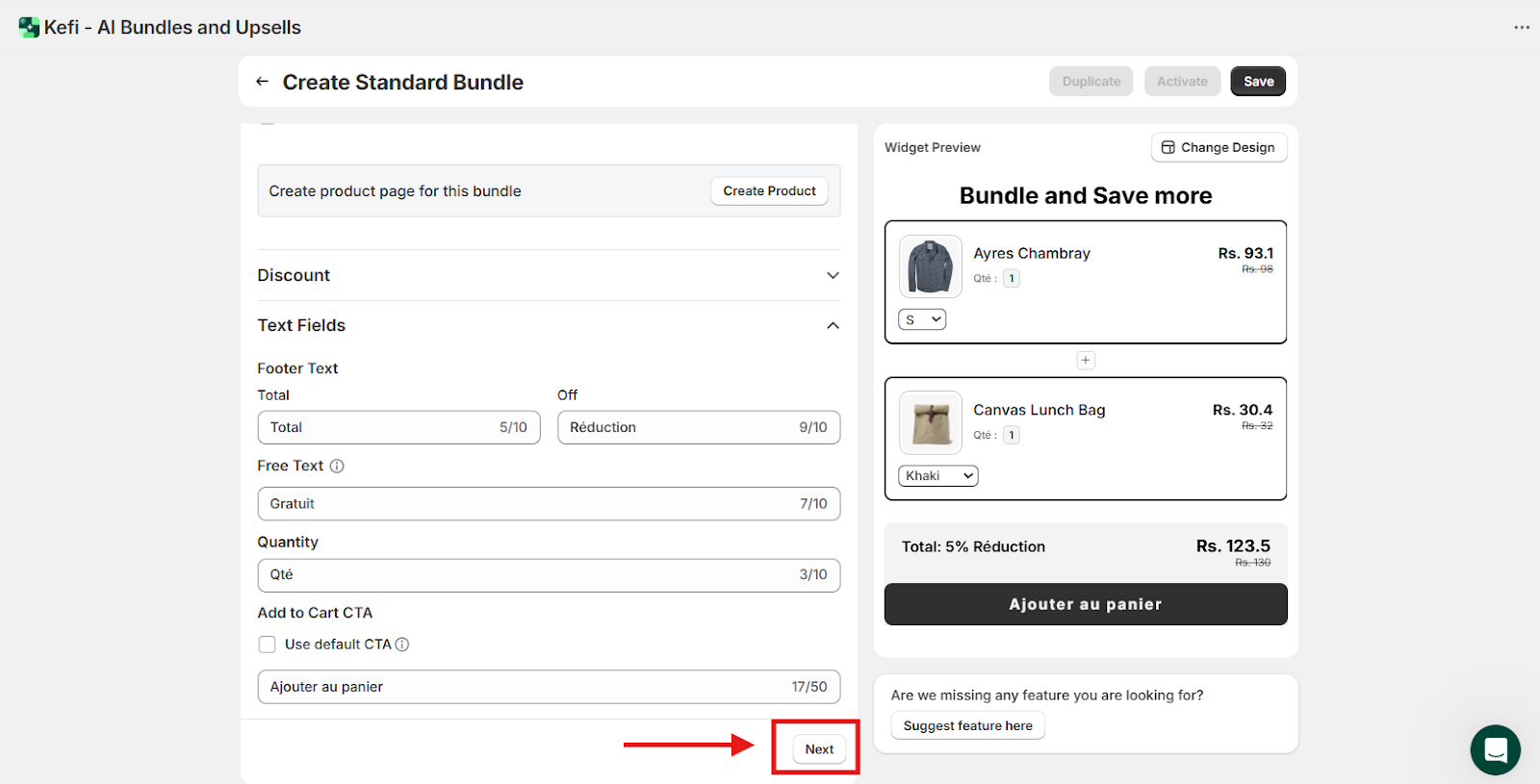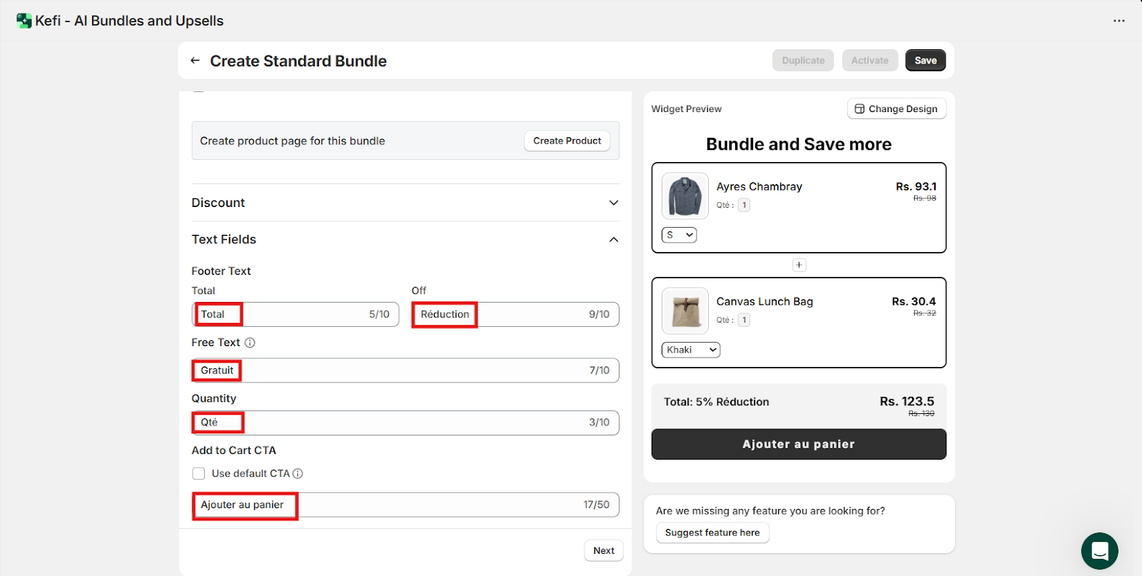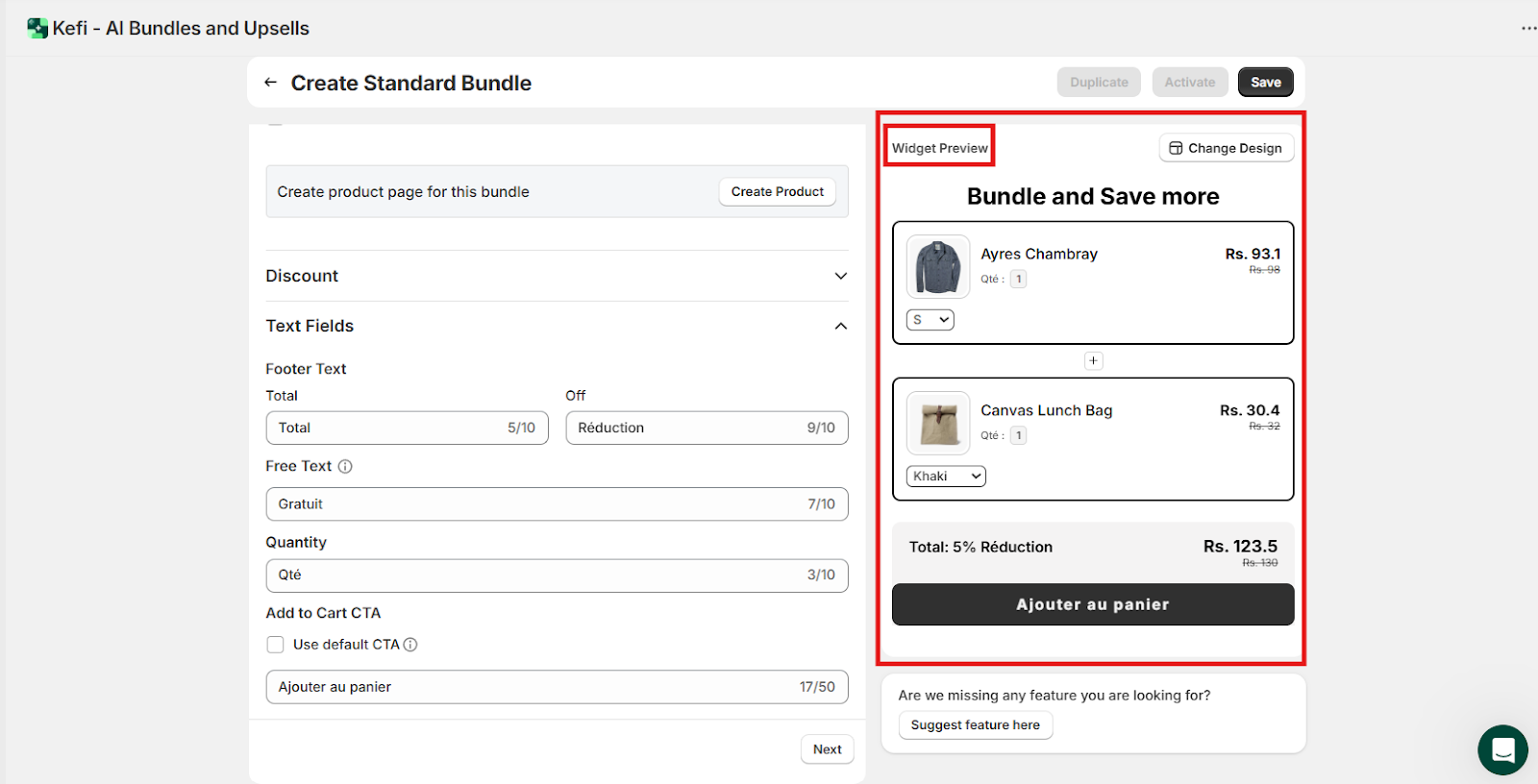 Voilà! Your Standard Bundle is now active on your Shopify store—complete with the French text applied in the widget. Your customers will now see a localized, user-friendly experience tailored to their language preferences.