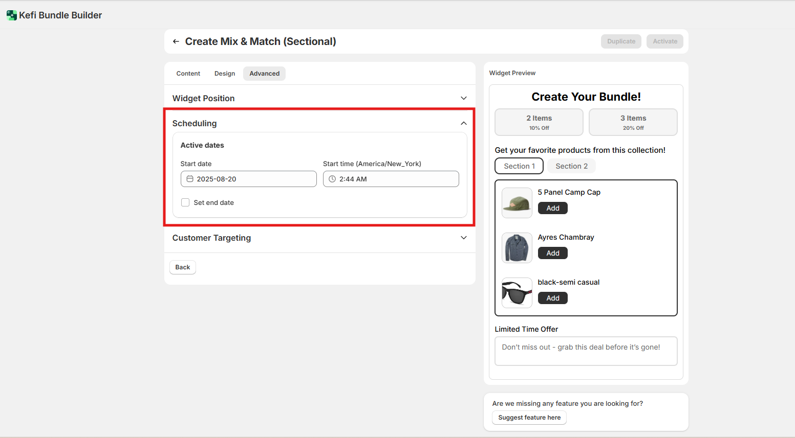 Set a start and end date for your bundle campaign. This is perfect for time-sensitive promotions, seasonal offers, or flash sales. The widget will only display during the defined period.