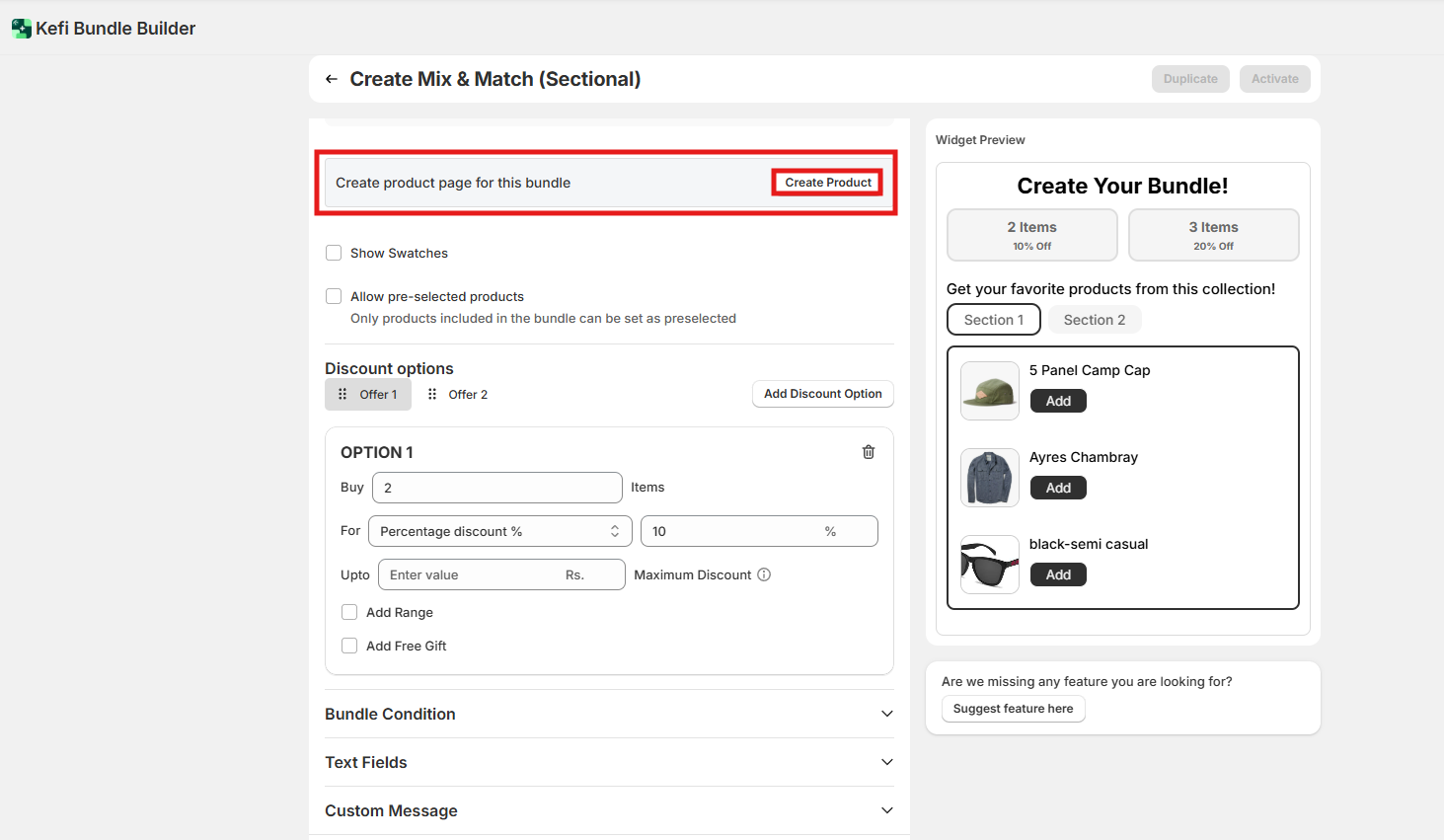 Once you've created your sections, you’ll also have the option to generate a dedicated product page for your Mix & Match (Sectional) Bundle.