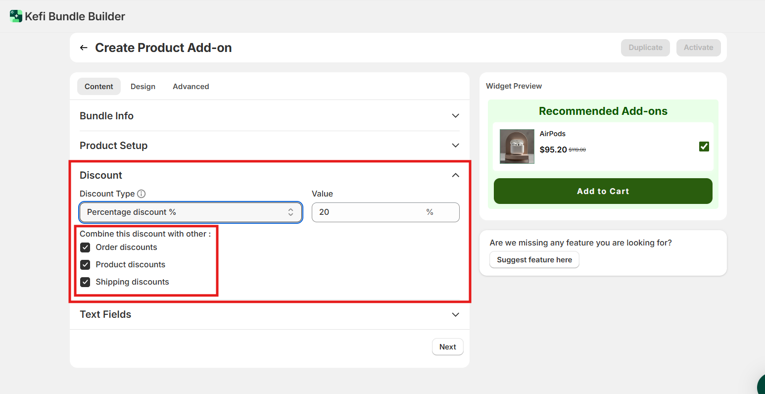 These flexible design options let you tailor every visual element of the bundle widget, ensuring a consistent, branded experience across your storefront.