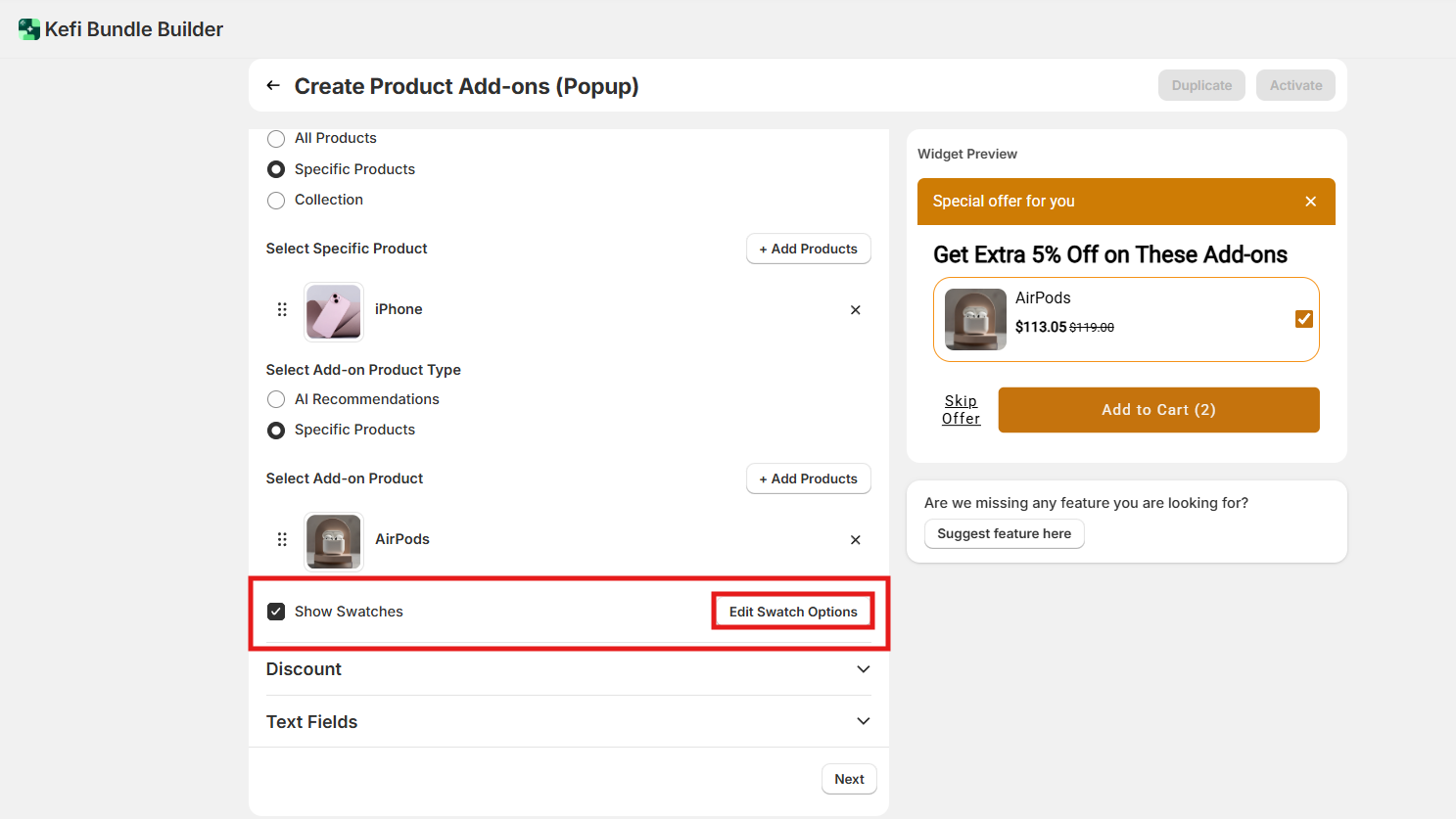 Show Swatches - You can also display product variants-such as different colors, sizes, or styles-by enabling the Show swatches option.