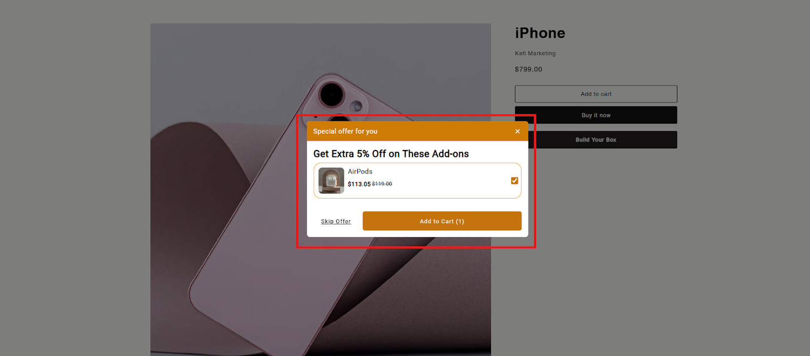 Skip – They can dismiss the popup and continue shopping without adding the add-on.