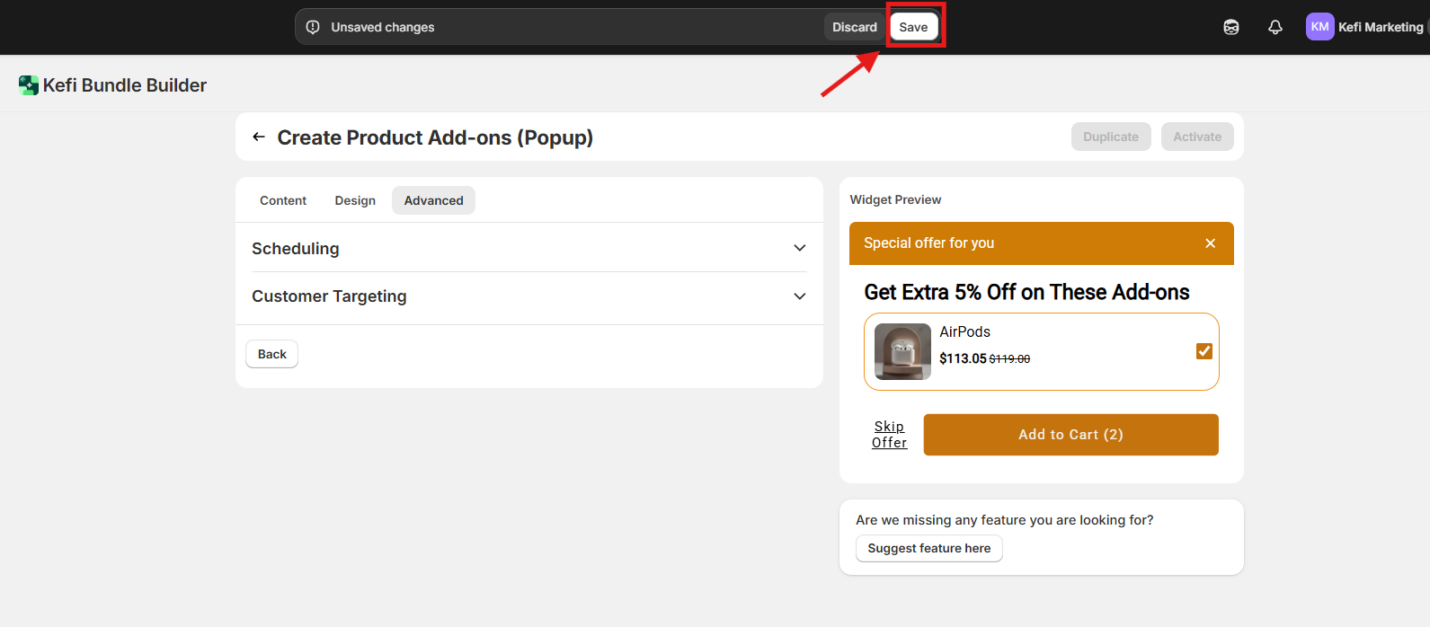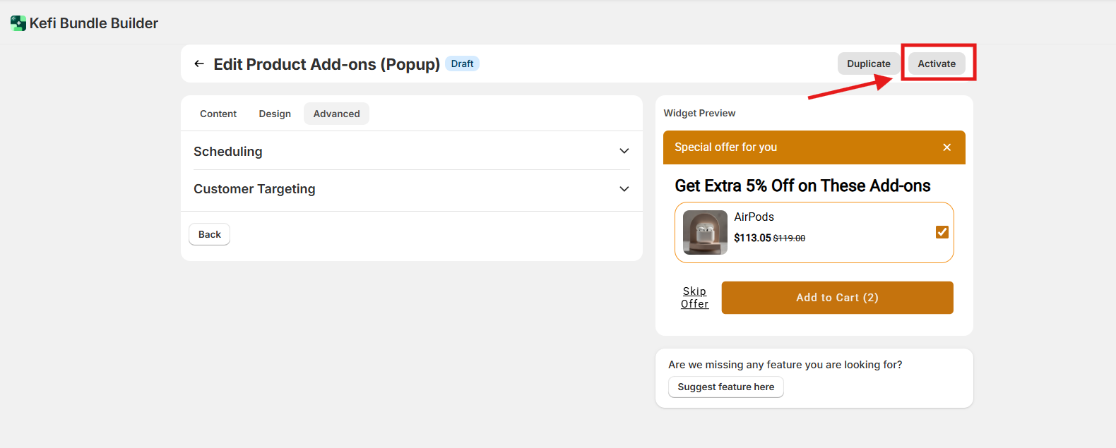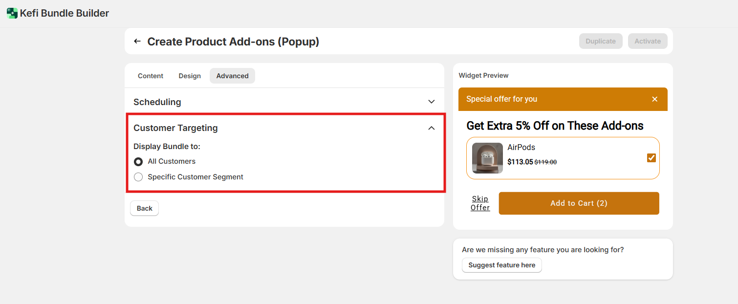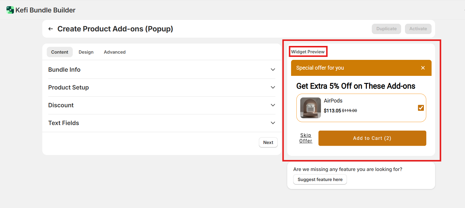 On the right side of the screen, you’ll see a live preview of the bundle widget. This preview updates in real-time as you configure your Product Add-on settings.