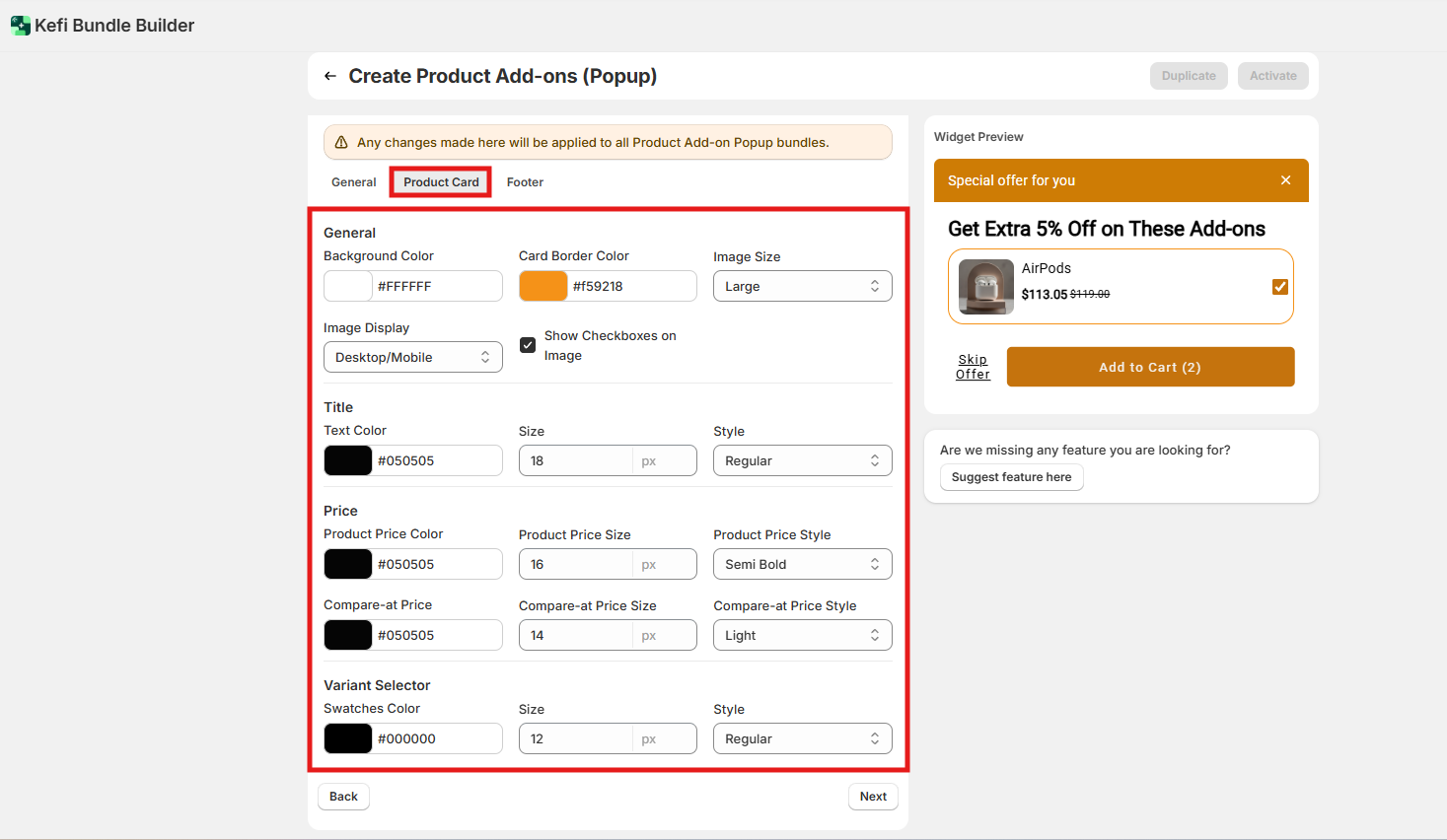 With these flexible design settings, you can ensure your bundle widget not only looks professional and visually aligned with your store but also provides a smooth and consistent experience for your customers across devices.