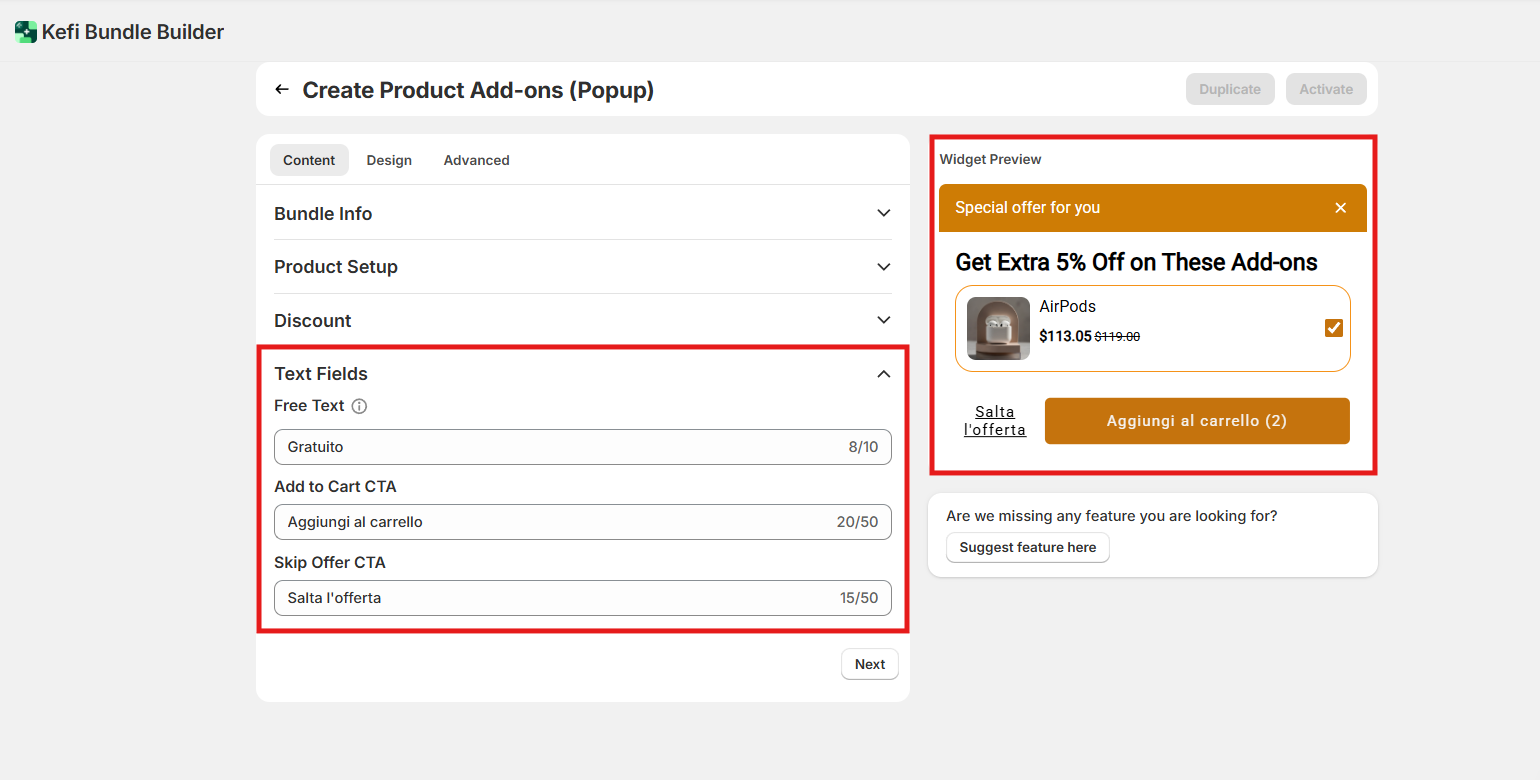 This section lets you customize all the text displayed on the bundle widget, making it easy to translate the content into a different language or align the messaging with your brand voice.