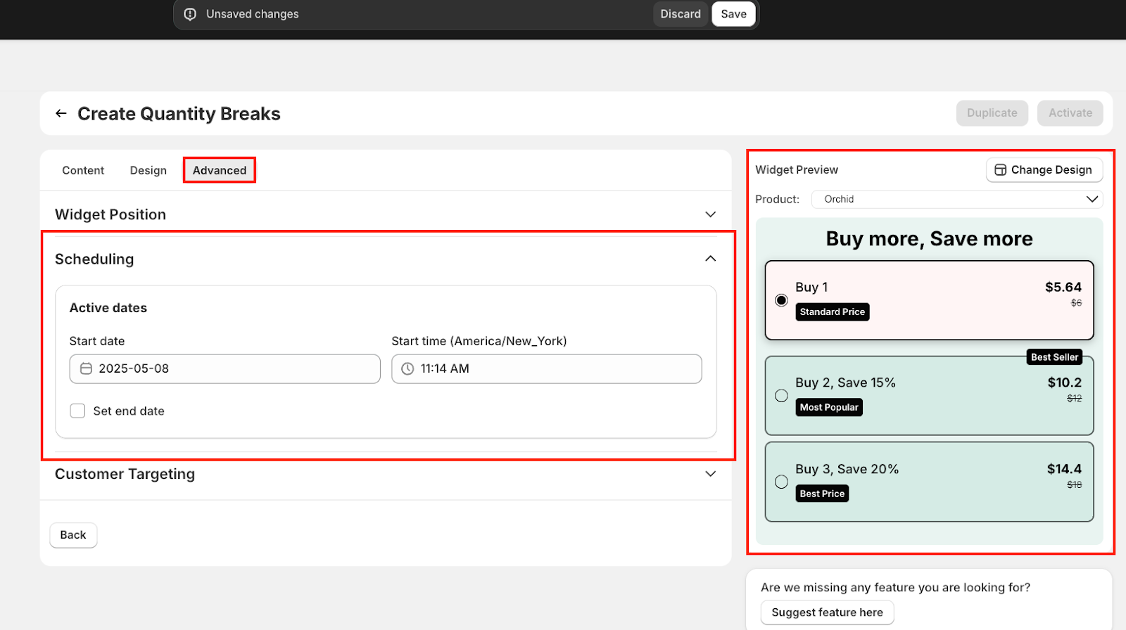 Set a start date and time, and even an end date for your Quantity Breaks offer.