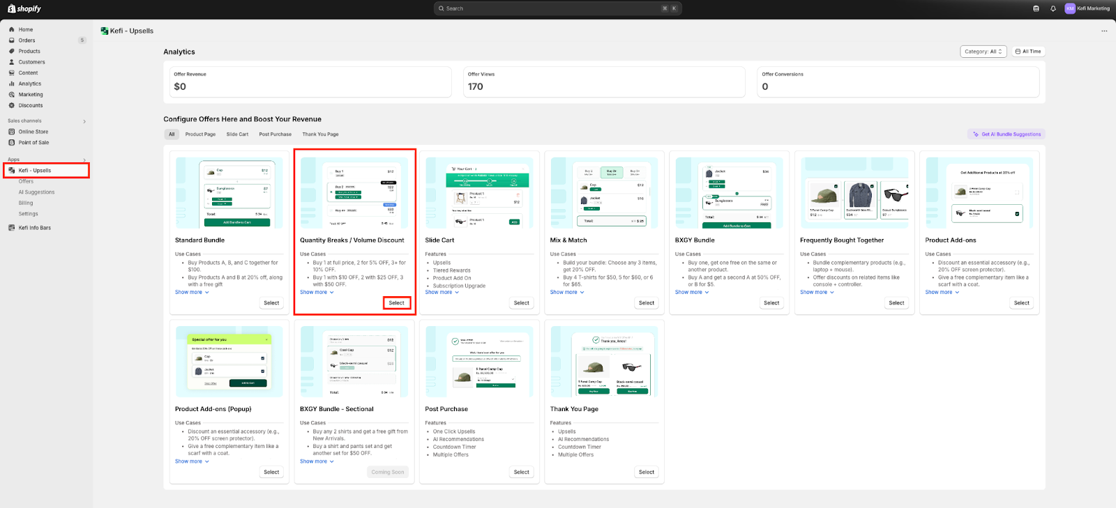 Quantity Breaks Bundle option to create the bundle. Click ‘Select’.