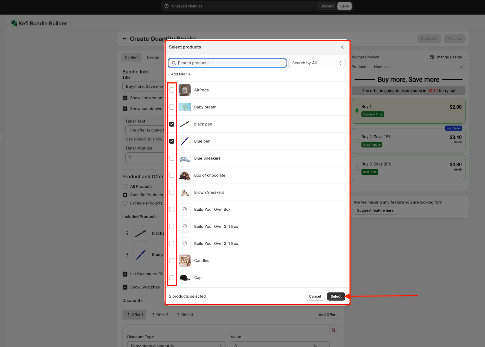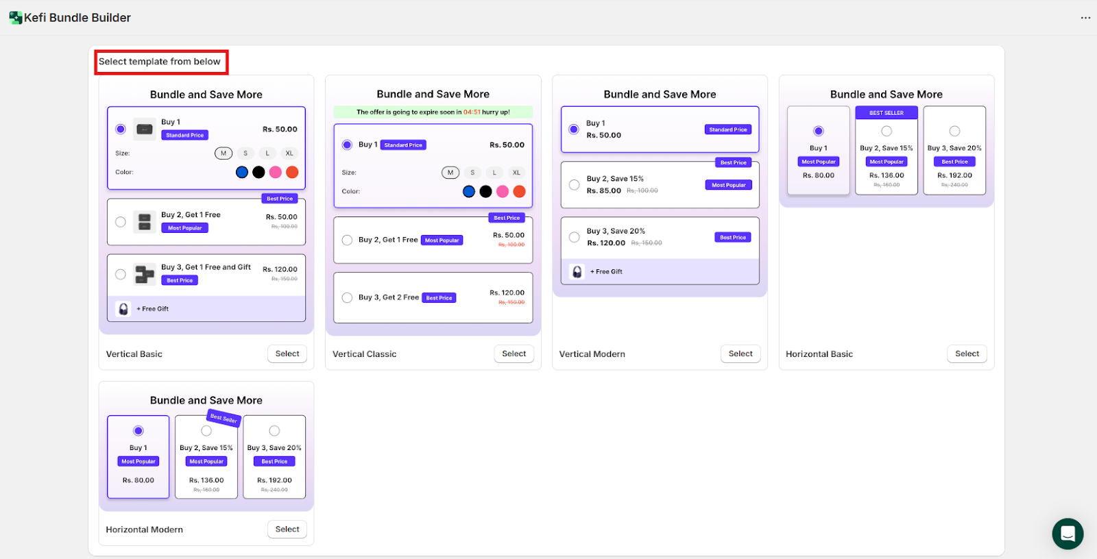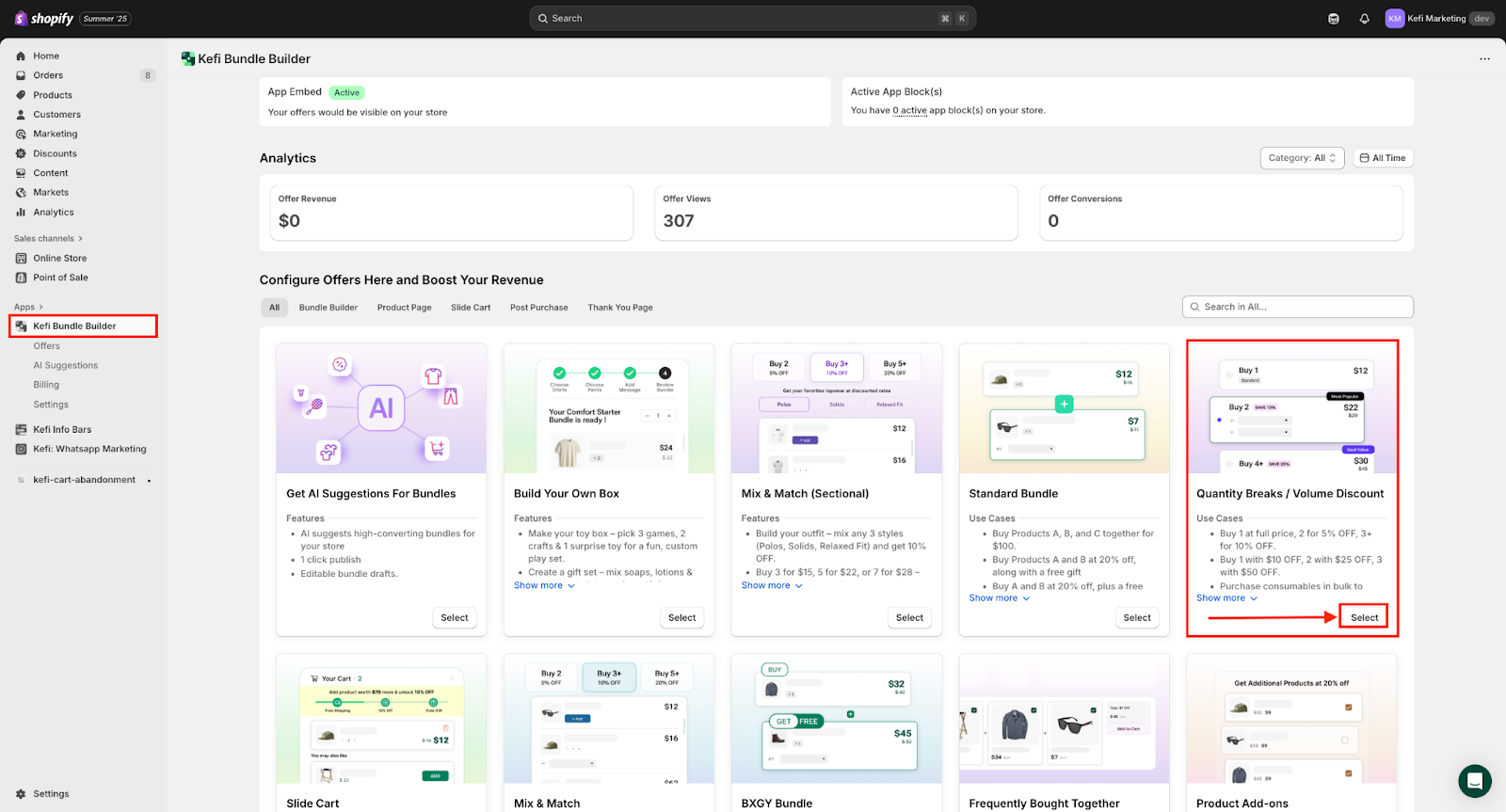 Go to the Kefi Bundle Builder homepage and select the Quantity Breaks/Volume Discount Bundle option to create the bundle. Click ‘Select’.