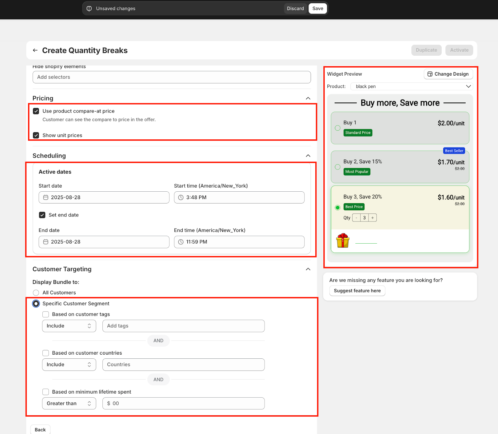 Whether you’re selling consumables like supplements, apparel in multiple sizes, or accessories often bought in pairs or sets, the Quantity Breaks Bundle makes bulk buying feel like the smart, obvious choice—delivering value for your customers and growth for your business.