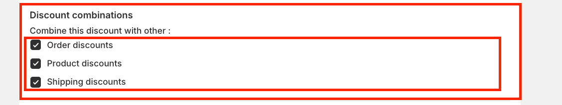 Shipping Discounts – Allow this discount to combine with shipping offers like free or reduced delivery.