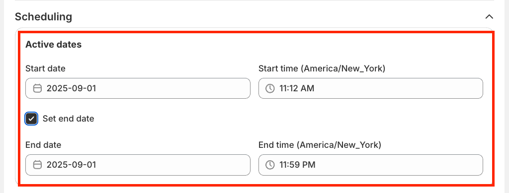Set End Date (Checkbox): When checked, you can define an end date to automatically stop the offer at a specific time, perfect for flash sales or seasonal campaigns.
