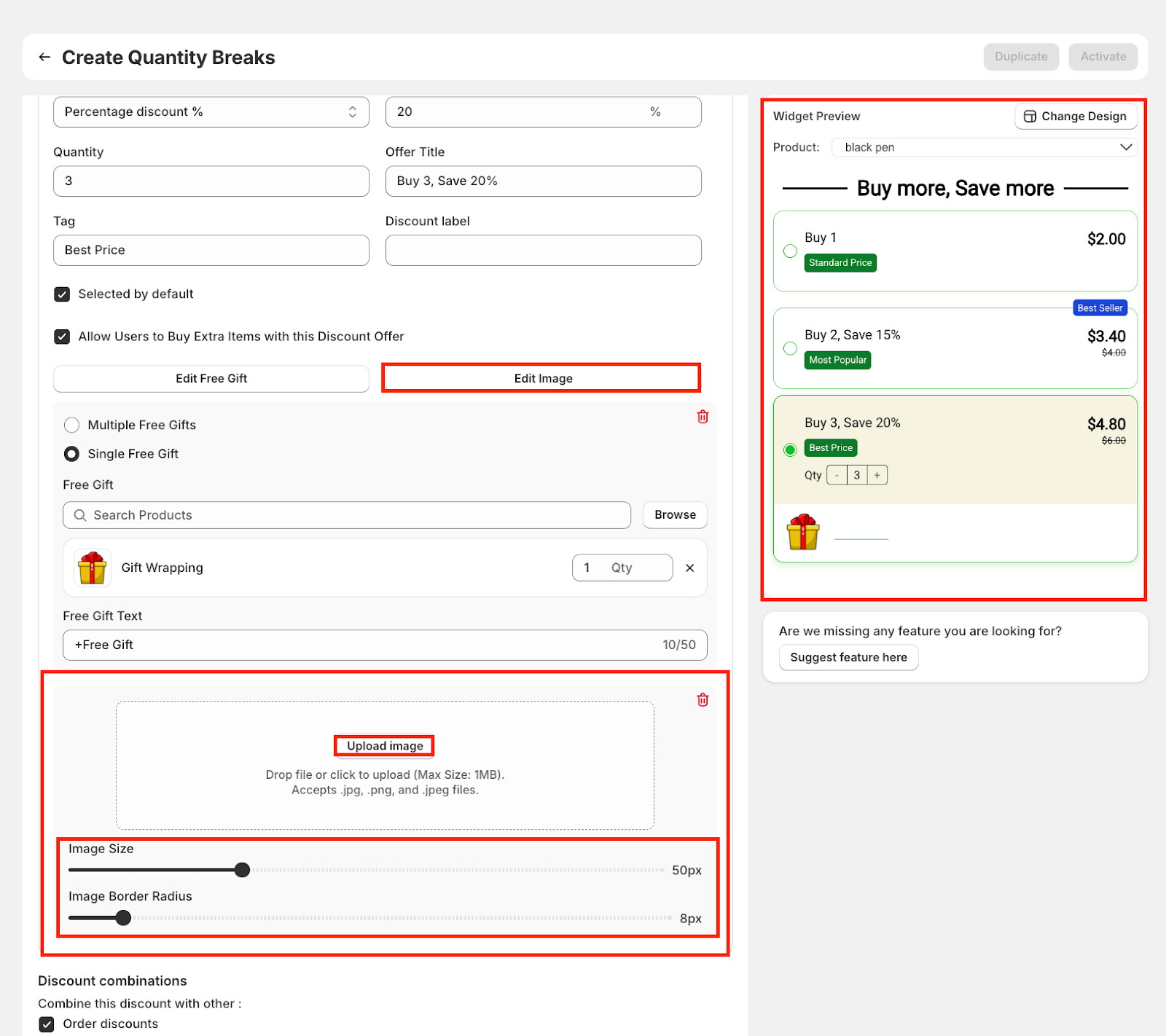 You can also enhance your discount offer by uploading a custom image to make it more eye-catching and engaging for shoppers. Simply click ‘Add Image’.